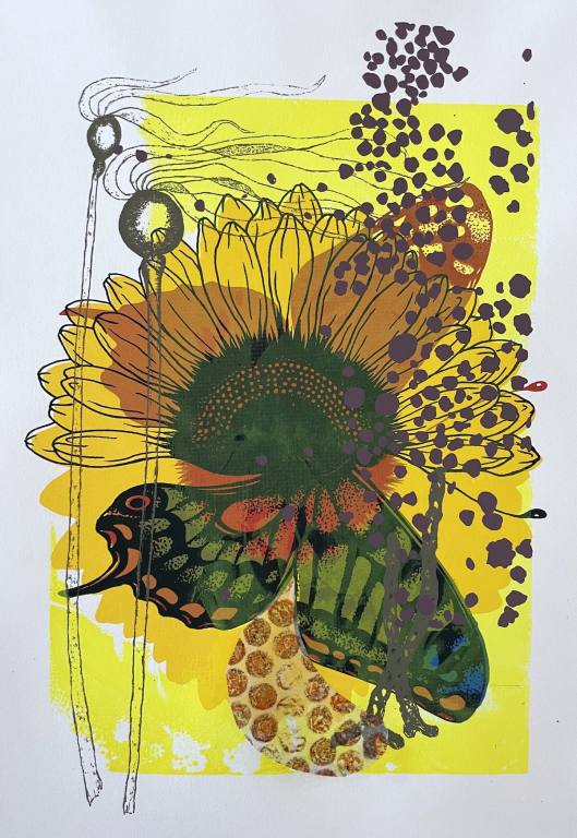 In this case I also added a small section of collage. This print is overprinted on work done by artist Tomoko Murakami.